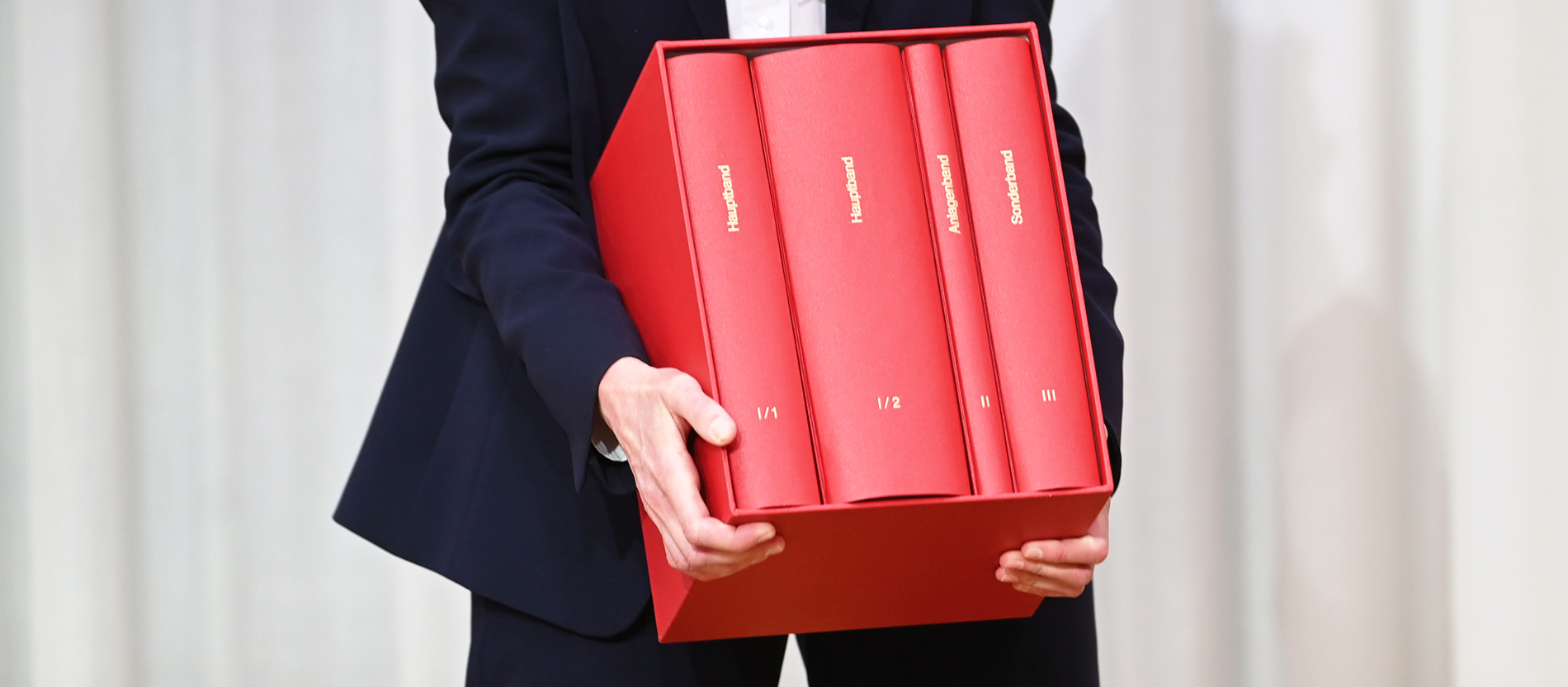 Stephanie Herrmann, Amtschefin der Erzdiözese München und Freising, hält das Gutachten zu Fällen von sexuellem Missbrauch im katholischen Erzbistum München und Freising in den Händen, nachdem es von der Münchner Anwaltskanzlei Westpfahl Spilker Wastl vorgestellt und übergeben wurde. Das Bistum München hatte die Anwaltskanzlei mit dem Gutachten über die Missbrauchsfälle beauftragt.